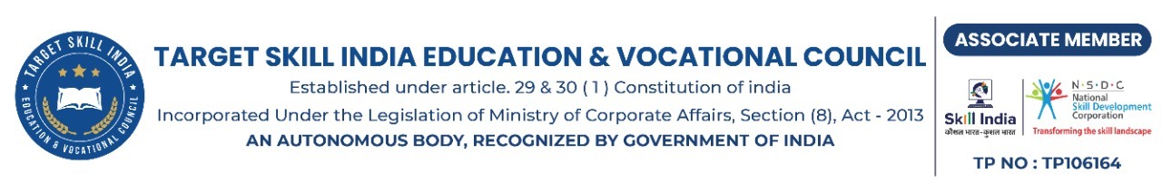 A Target Skill India Education and Vocational Council is a one of the legal status of the growing body of under Development Entrepreneurship in India. The Constitution of India and Incorporated under the legislation Public in Government of India. And Indian Education Commission (Vocational Education Council training) An Autonomous Body Executive Council. It aims to promote VOCATIONAL & TECHNICAL EDUCATION